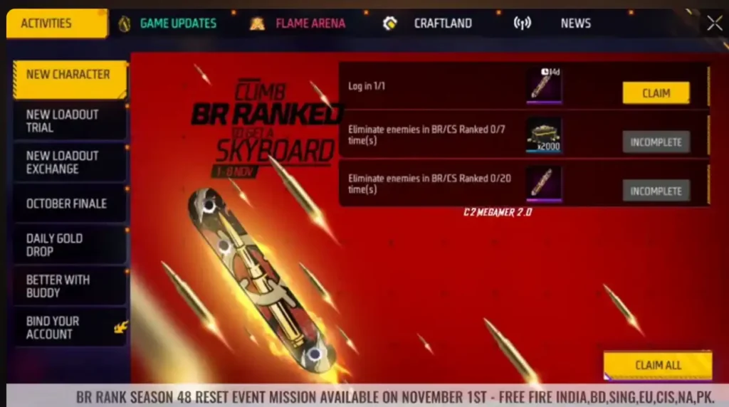 A new BR rank season will start on November 1. The old season will reset, and new missions will be released. This event will be available across all servers including India, Bangladesh, Singapore, Europe, South Africa, America, Nepal, and Pakistan.